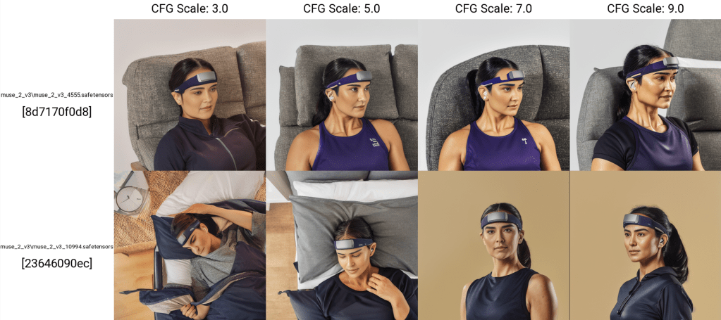 For both Muse S Man & Woman, in my opinion CFG scale = 7.0 is the best choice and is what we’re going to use. Evaluation based on vibes only.