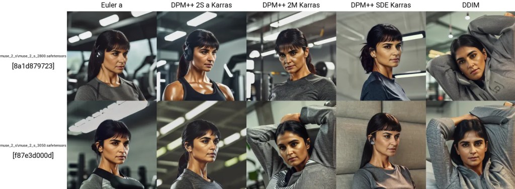At this point I have no idea what I’m doing, and have no idea what to expect. I did not label any of the photos, used a small number of training steps and realized quickly there was no way I could “tell” the model that I wanted to generate images of people wearing the headband because I never told it what a headband was. Anyway, here are the results – as expected with no headbands.