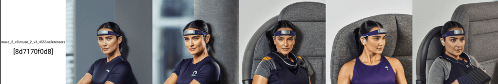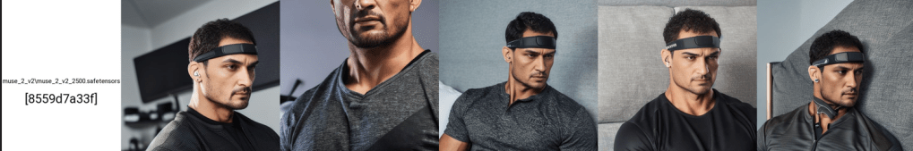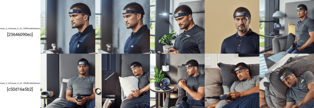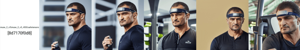 As expected, by including a description with each training image, we can at least gain context on what the headband is. All I needed to add here was “muse 2 style person” and got the results below.