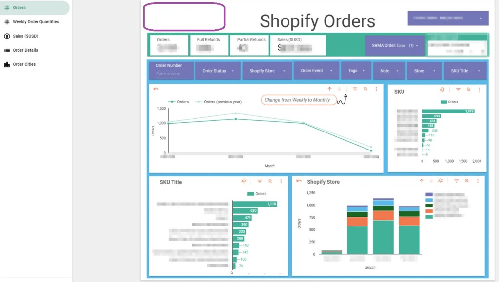 label: Shopify Orders Dashboard - Purchase, Refund, Partials in $USD